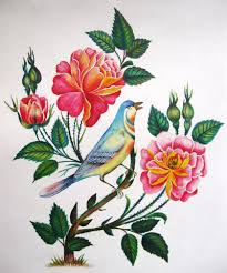 1. نقش الزهرة والطائر: